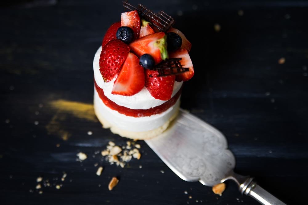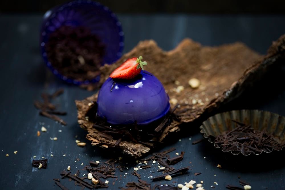 Nem csak a fények fontosak, hanem a körítés is. Nagyon sokat tud dobni az adott fotón egy gyönyörűen megkomponált környezet, a tökéletesen megválasztott kiegészítők és színek is. A gusztusos tálalás elengedhetetlen. Ebben volt segítségemre az Angelo Cafe részére készített sorozatomban a Visuel csapata, akik fantasztikus dekorációt készítettek a fotózáshoz. A sütemények fotózásánál annyi nehézség van még, hogy gyakran elég sérülékenyek: a folyamatos mozgatás és áthelyezgetés hatására történhetnek kisebb balesetek. Így járt az első képen látható torta is, ezért egy kicsit csalnunk kellett a kompozícióval.