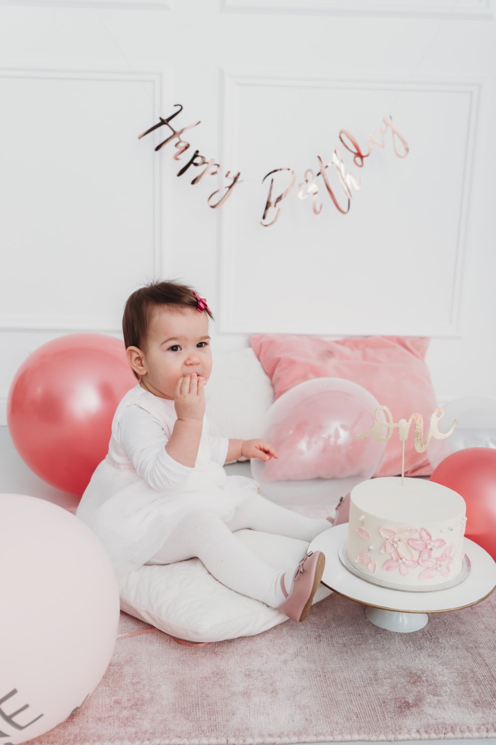 - készüljetek tortával, lufikkal, minimális dekorációval. A fotózás legszenzációsabb része mindig a tortarombolás, amikor a gyermek igazán kiélvezheti a saját első tortáját! 🙂 Fontos, hogy a csokikrém, vagy sötétebb színű krémek kevésbé mutatnak jól szétkenve, illetve a későbbi takarítás is nehézkesebb lesz, úgyhogy valamilyen világosabb, esetleg fehér színű tortát javaslok a fotózáshoz. A túl sok dekort és a gyertyákat sem javaslom a tortán.